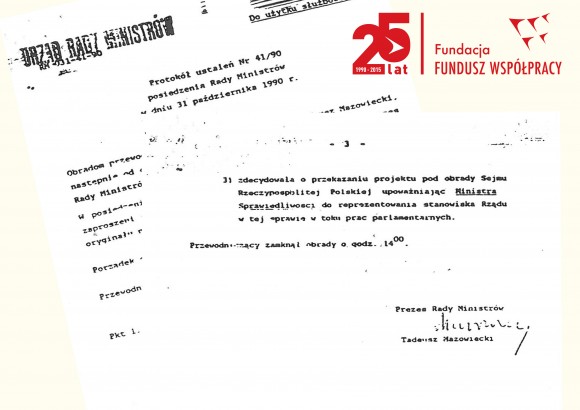 31 października 1990 roku, Rada Ministrów, której przewodniczył Premier Tadeusz Mazowiecki podjęła strategiczne decyzje umożliwiające rozpoczęcie faktycznej działalności Fundacji Fundusz Współpracy.